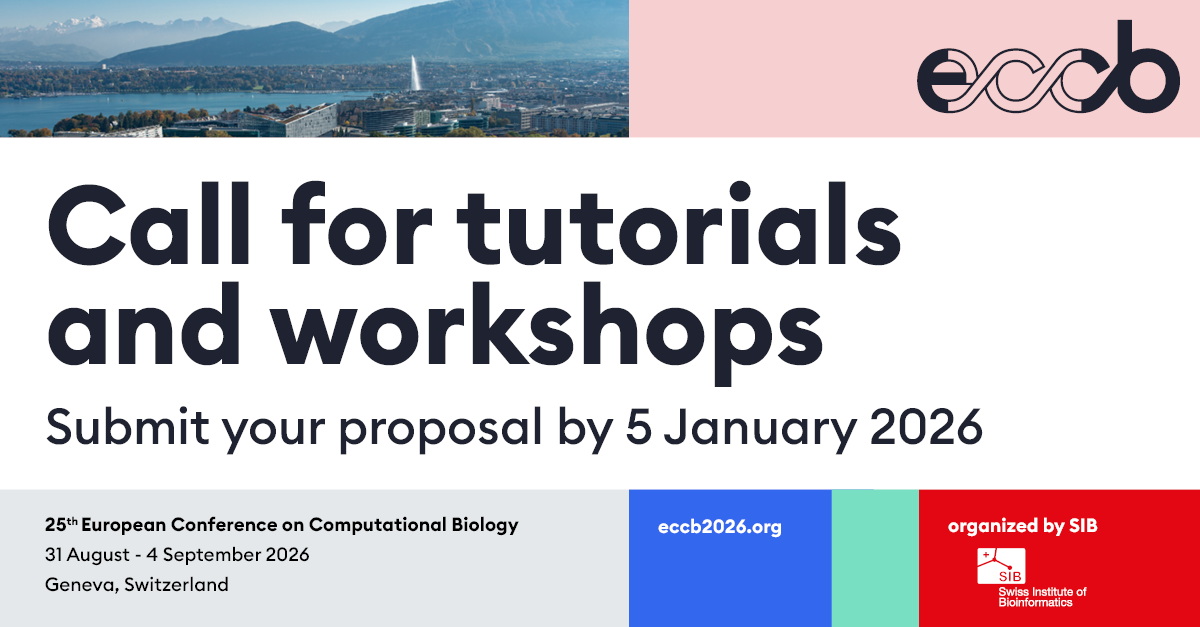 SIB (Swiss Institute of Bioinformatics) se enorgullece de organizar la Conferencia Europea de Biología Computacional (European Conference on Computational Biology, ECCB), que tendrá lugar en Ginebra en 2026. En este contexto, nos complace anunciar que ya está abierta la convocatoria para tutoriales y workshops.
